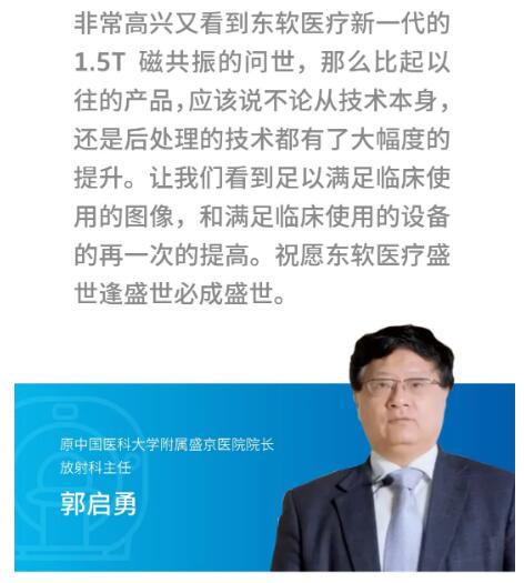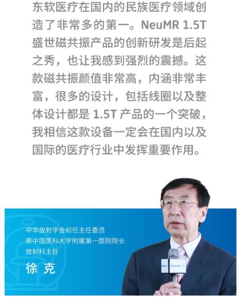 “NeuMR 1.5T盛世磁共振的发布承载了公司的使命,也凝聚了东软医疗人的智慧与创新,无论从工艺的设计还是生产研发都有质的飞跃,相信这款磁共振产品定能以卓越的品质服务国内外民众的健康。”东软医疗总裁兼首席运营官江根苗如是说。